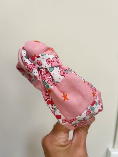Pink Floral Quilted Topknot Headband