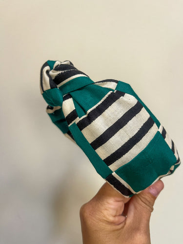 Teal Striped Quilted Topknot Headband