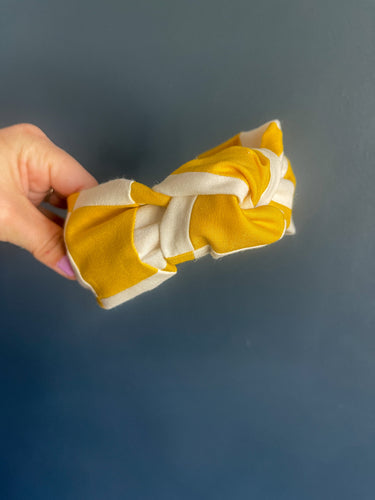 Yellow and White Quilted Topknot Headband