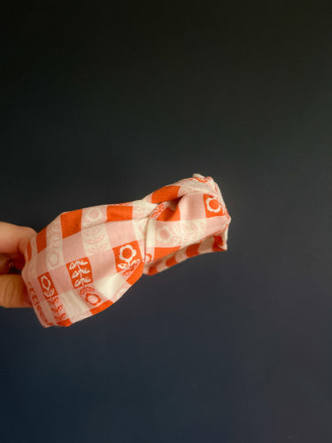 Flower Plaid Topknot Headband