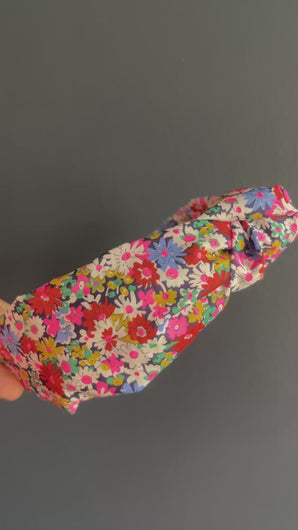 Topknot headband made using Liberty of London fabric in Libby Neon.