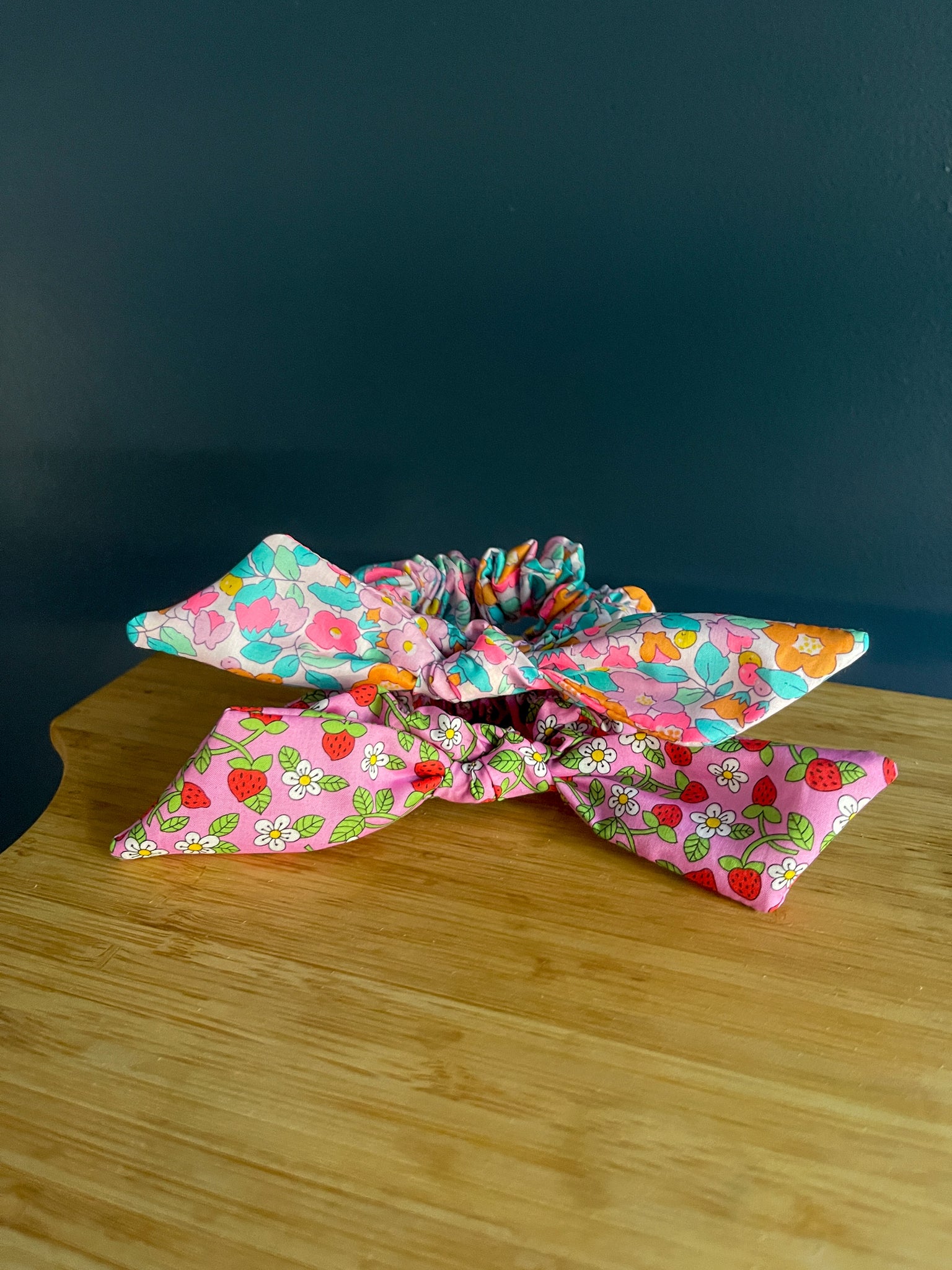 Bow Scrunchie made using Strawberries and Cream Liberty fabric.