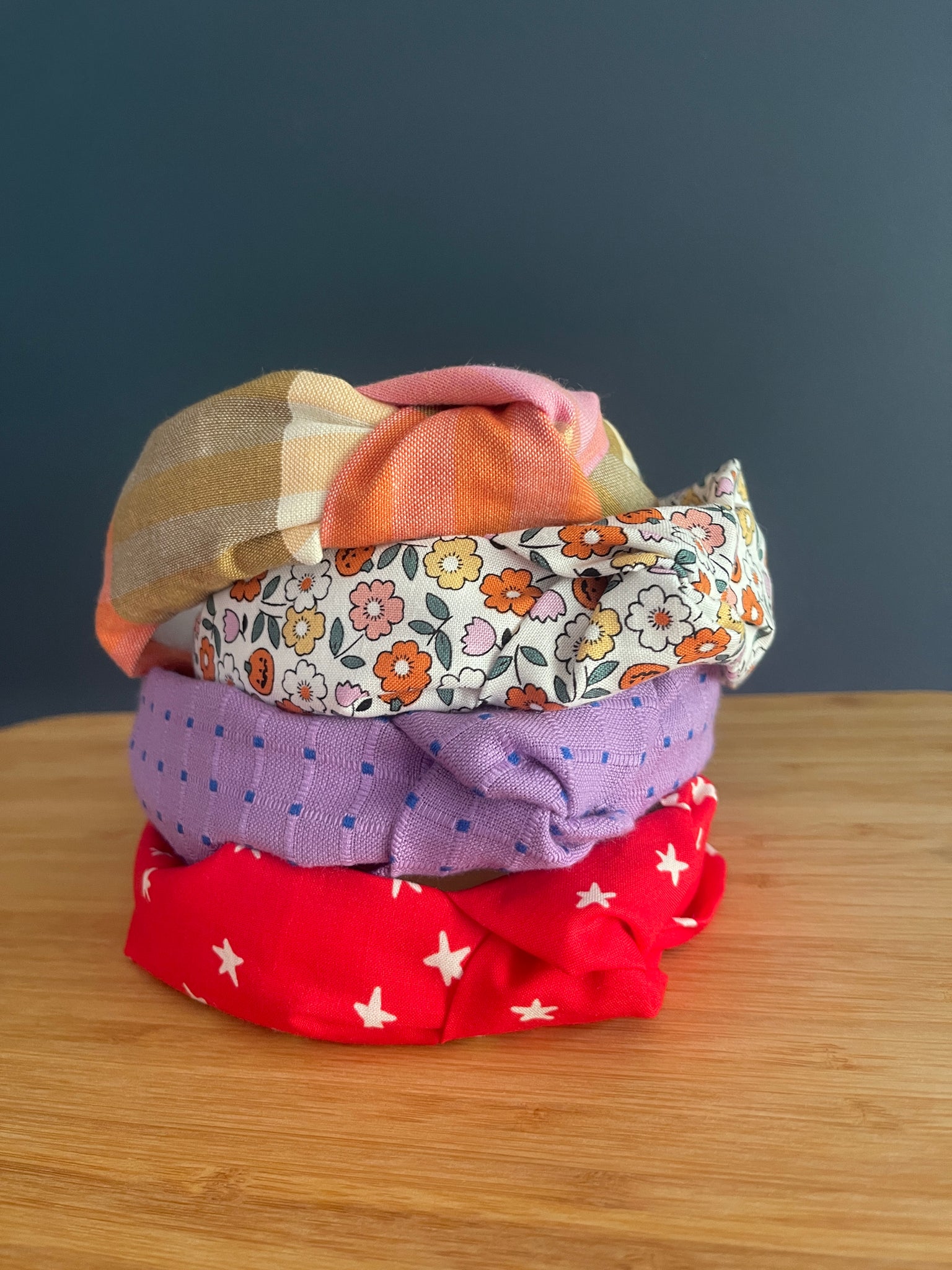 Topknot headband made using Starry in Ladybug fabric designed by Alexia Marcelle Abegg for Ruby Star Society