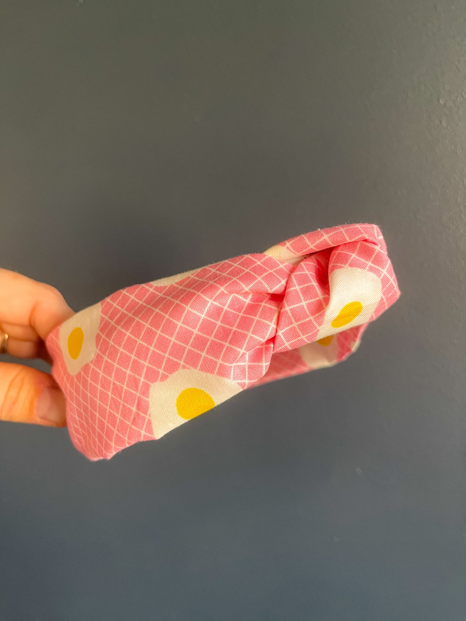 Topknot headband made using Sunny Side Up fabric in posy pink fabric designed by Kim Kight for Ruby Star Society.